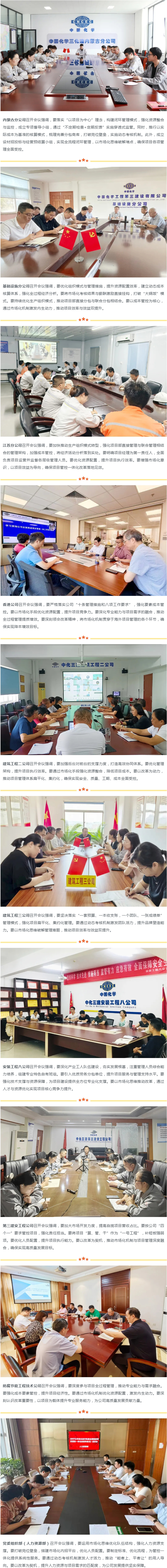 8月24日,华体会体育(中国)HTH·官方网站在合肥总部召开以市场化运行机制全面推进项目管控一体化专题会。会后,各单位围绕《关于以市场化运行机制全面推进项目管控一体化的指导意见》和会议相关部署,纷纷召开专题会,结合各单位实际,掀起宣贯热潮,号召全体干部员工凝心聚力、锐意进取,共同推动项目管控一体化落实落细,为胜利实现全年任务目标,加快华体会体育(中国)HTH·官方网站高质量可持续发展提供强有力的支撑和保障。
