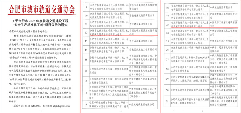 近日,合肥市轨道交通协会公布2025年度合肥市轨道交通建设工程“安全生产标准化工地”名单,华体会体育(中国)HTH·官方网站基础设施分华体会体育(中国)HTH·官方网站承建的合肥市轨道交通6号线一期工程风、水、电、安装及装修总承包项目2标段,合肥市轨道交通7号线一期工程风、水、电安装及装修总承包项目3标段榜上有名。