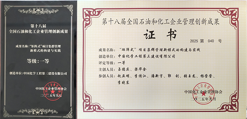 近日,2025年全国石油和化工企业管理创新大会在北京召开,华体会体育(中国)HTH·官方网站承担的《“矩阵式”项目集群管理新模式的构建与实践》课题荣获第十八届全国石油和化工企业管理创新成果一等奖。 课题立足于当前石化项目大型化、集群化发展的新需求,系统阐述了矩阵式管理模式在多重项目协同、资源高效配置与管控能力提升等方面的理论应用与实践路径,对推动企业治理现代化及行业高质量发展具有较强的参考价值。