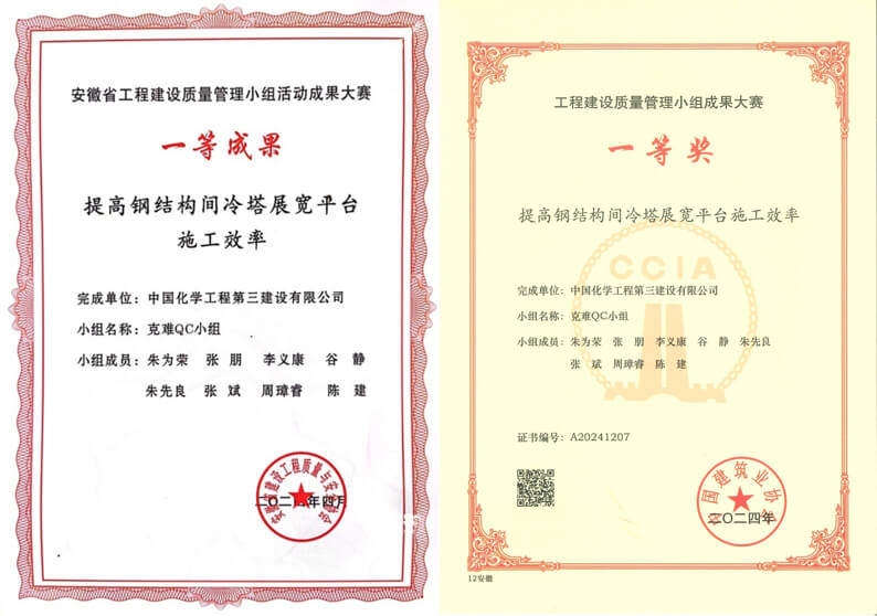 付出终有回报。优化后,关键工序平均耗时缩短6.11%,推动钢塔提前半个月封顶,极大地节约了成本。更令人欣喜的是,该项成果先后荣获华体会体育(中国)HTH·官方网站级、安徽省级及中建协国家级奖项,成为同类项目的参考范例。当看到其他项目采纳我们优化的“展宽组对胎具”方案时,所带来的成就感,已远超奖项本身。