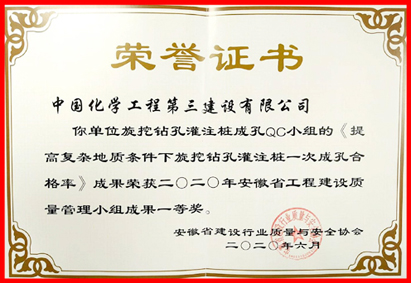 在华体会体育(中国)HTH·官方网站首次参加的安徽省建筑业企业QC小组成果交流大赛中,华体会体育(中国)HTH·官方网站建筑工程三华体会体育(中国)HTH·官方网站旋挖钻孔灌注桩成孔QC小组“提高复杂地质条件下旋挖钻孔灌注桩一次成孔合格率”QC成果、青岛分华体会体育(中国)HTH·官方网站金能产品分离塔吊装QC小组“超重超高大直径分离塔多段高空吊装技术研发”QC成果荣获一等奖;电气仪表工程一华体会体育(中国)HTH·官方网站技术研发中心电气QC小组“提高密集型插接式母线槽安装合格率”QC成果荣获二等奖。