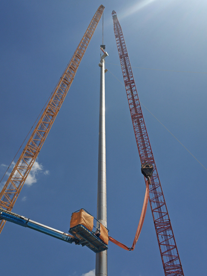 疫情发生以来,现场人员、机械等资源使用受到很大限制,土建单位停工造成了场地不具备安装条件。项目队优化人力资源组合,科学规划作业内容。技术人员对施工方案、作业流程以及可能出现的各种状况进行充分探讨、论证,准备了各类预案,保障了施工顺利完成。例如,在场地受限、大型吊装机械无法满足数量要求,且唯一一台大吊车无法到达最优作业位置的情况下,项目队仍然成功完成70多米再生塔顶层超大平台跨主管廊安装。此外,由于设计理念的原因,现场工艺设备口配管几乎均为焊接型,且大部分具有特殊角度,大大增加了作业难度。技术人员积极与总包探讨,据理力争,通过增加焊口,或者修改现场口位置,甚至将已完成的预制口切口、避开特殊角度等方式,成功完成100多米洗涤塔多条超高空大口径附塔管及异形大口径管段安装等多项重难点施工任务。