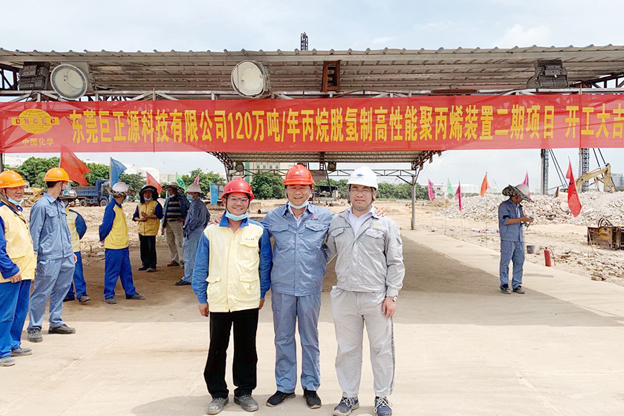 7月的东莞,风和日丽百花香。20日上午,受江苏分华体会体育(中国)HTH·官方网站经理姚景浩邀请,东莞巨正源科技有限华体会体育(中国)HTH·官方网站总经理李汉初等业主领导、广石化监理华体会体育(中国)HTH·官方网站领导,共同出席东莞巨正源120万吨/年丙烷脱氢制聚丙烯二期项目开工仪式。