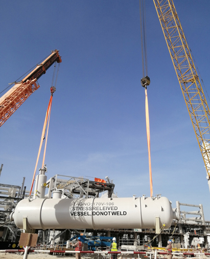 目前,现场结构安装累计完成3080吨,占总量的47.5%;设备安装完成116台,占总量的24%;工艺管道完成3145DB ,占总量的1.25%。后续施工任务还非常艰巨,项目部将开足马力,以“抗疫保收,双百会战”为契机、为起点,保质保量完成在手任务,为杜库姆炼油项目的早日建成投产不懈努力。