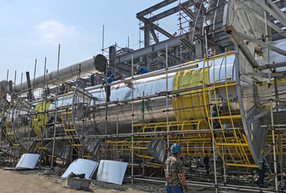 项目队充分发扬防腐节能华体会体育(中国)HTH·官方网站华体会体育(中国)HTH·官方网站员工队伍吃苦耐劳、团结协作、攻坚克难精神,在4天时间内,顺利完成两台塔器脚手架搭拆、防腐和保温。外观整齐无瑕疵,观感良好,业主、监理一致称赞:两台塔器的防腐保温为浙石化二期项目防腐保温施工树立了样板。