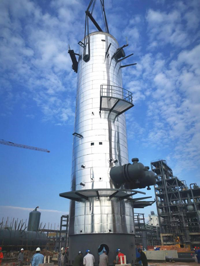 11月12日,安装工程二华体会体育(中国)HTH·官方网站承建的山东淄博海益精细化工有限华体会体育(中国)HTH·官方网站碳三综合利用项目25万吨/年丙烷脱氢制丙烯装置首台大件设备脱乙烷汽提塔下段圆满吊装就位,拉开现场大件设备吊装序幕。