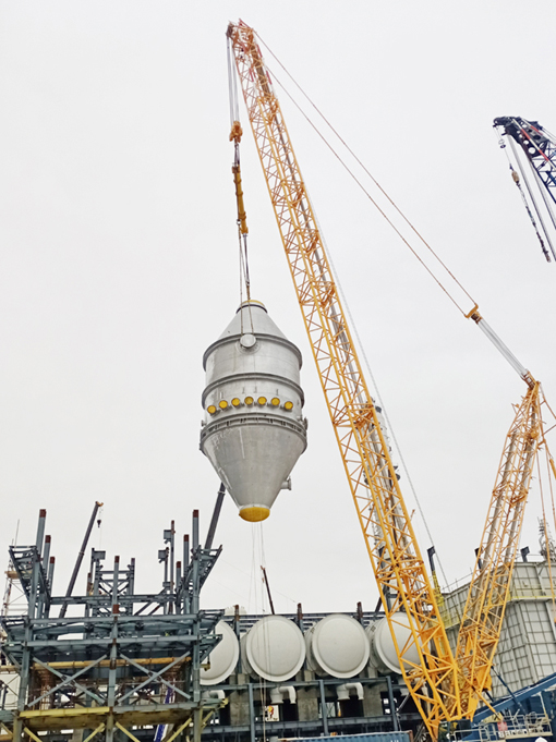 2月10日,安装工程五华体会体育(中国)HTH·官方网站承担吊装的哈萨克斯坦PDH项目再生空气加热炉顺利安装就位。