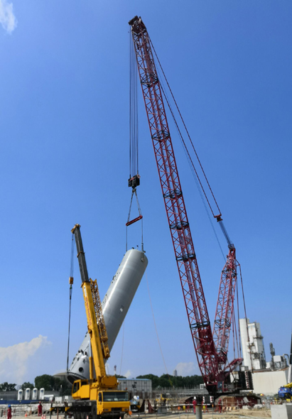 “五一”期间,安装工程一华体会体育(中国)HTH·官方网站承建的新加坡林德气化技改项目首台大型设备——酸性水进料罐安全稳妥吊装就位。