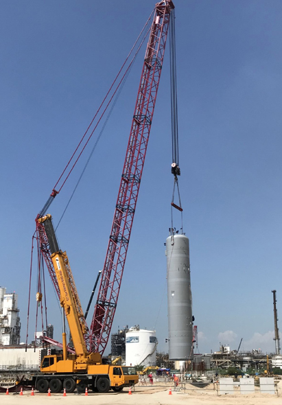 设备吊装开始前,项目队对设备及基础进行复测,对相关作业人员进行详细的安全技术交底,对各个环节进行一一排查,确保设备安装万无一失。在各参战单位的共同努力下,最终圆满完成此次大件设备吊装任务,为后续大型设备吊装打下了良好基础,为项目建设的有序推进创造了良好条件。