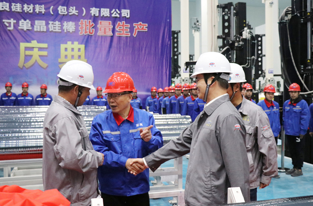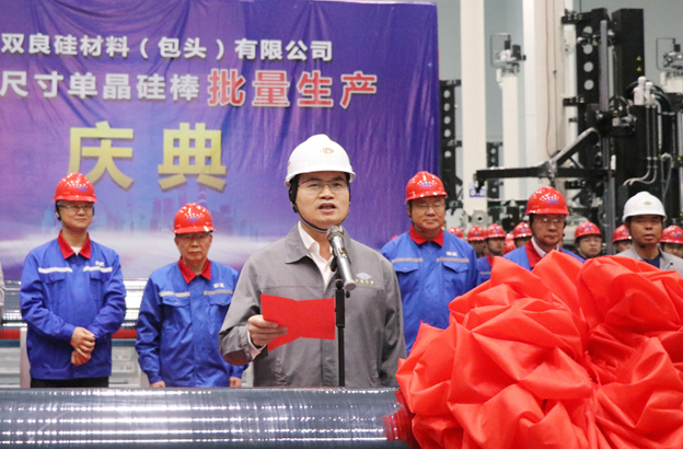 10月5日上午,华体会体育(中国)HTH·官方网站总包的双良集团——双良节能系统股份有限华体会体育(中国)HTH·官方网站包头40GW单晶硅一期项目大尺寸单晶硅棒批量生产庆典在单晶一厂隆重举行。双良集团董事局主席缪双大、总裁马培林等出席庆典活动。华体会体育(中国)HTH·官方网站党委书记、董事长占德庆应邀出席并致辞。