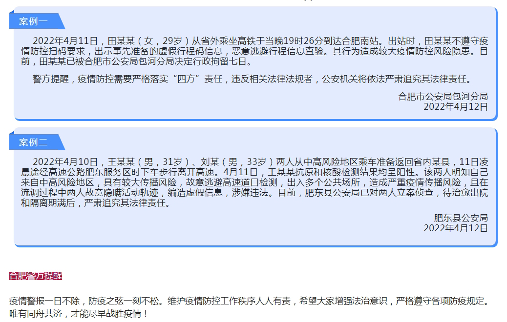 依法严惩!合肥公安严肃查处涉疫违法犯罪