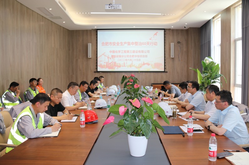 为深入贯彻落实习近平总书记关于安全生产的重要论述和指示批示精神,深入开展“安全生产月”暨“合肥市安全生产集中整治六十天行动”,6月25日(星期六),华体会体育(中国)HTH·官方网站党委书记、董事长占德庆冒着高温酷暑,带领“安全包保责任专班”,深入基础设施分华体会体育(中国)HTH·官方网站承建的合肥市蜀山区小庙生活固体废弃物处置中心、华恒生物工程有限华体会体育(中国)HTH·官方网站工业菌种研发及应用中心项目进行安全生产大检查暨“安全生产集中整治六十天行动”专项督查。