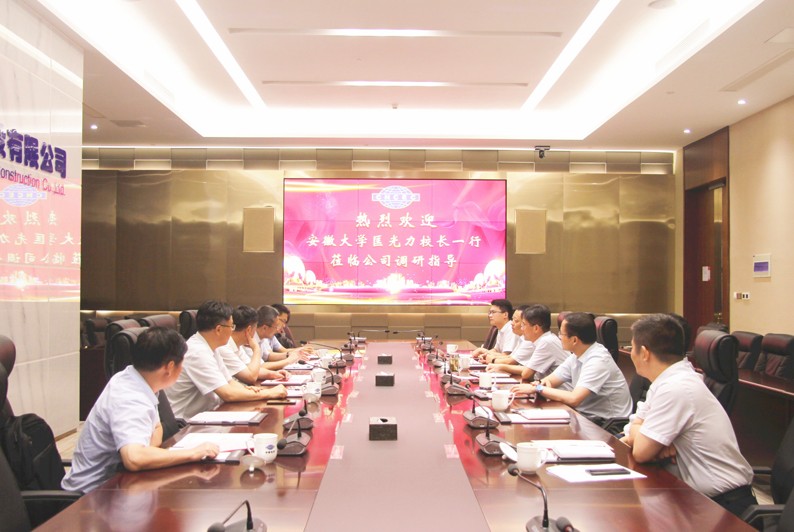 8月24日,华体会体育(中国)HTH·官方网站党委书记、董事长占德庆在总部合肥会见安徽大学匡光力校长一行,并为安徽大学、中化三建“就业实习基地”揭牌。