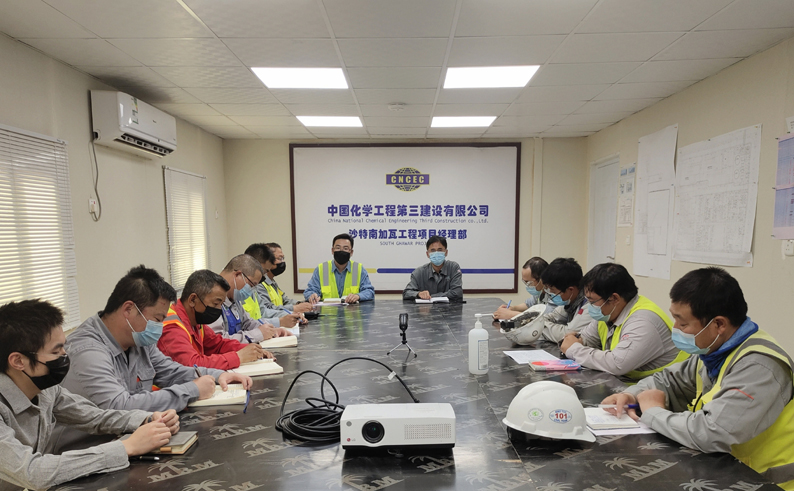 蔡向阳副总经理组织召开现场管理人员会议,就进一步提升现场管理水平,安全优质按期完成项目建设提出五点要求。一是要迅速掀起“大干一百天,奋进新征程”大会战热潮,结合总包“888大干活动”,科学制定施工计划,持续优化施工组织措施,综合考虑现场各方面因素,精准施策,靶向发力,科学合理制定人力资源计划,积极做好动员和协调工作,确保各项节点目标高效完成。二是要高度重视安全生产工作,严格落实安全生产责任制,抓好各类安全教育培训,强化交通安全和安保管理,坚持疫情防控常态化,杜绝麻痹大意思想,切实保障员工健康安全。三是要坚定不移贯彻落实集团华体会体育(中国)HTH·官方网站和华体会体育(中国)HTH·官方网站海外市场发展战略,增强“走出去”发展信心,深化精细化管理,加大各级各层绩效考核力度,努力提高工效。四是要进一步强化华体会体育(中国)HTH·官方网站各项管理制度的学习宣贯,切实与华体会体育(中国)HTH·官方网站步调一致、同频共振。抓好“导师带徒”工作,有针对性地做好人才培养,为华体会体育(中国)HTH·官方网站稳固和扩大沙特市场提供有力的人才支撑和保障。