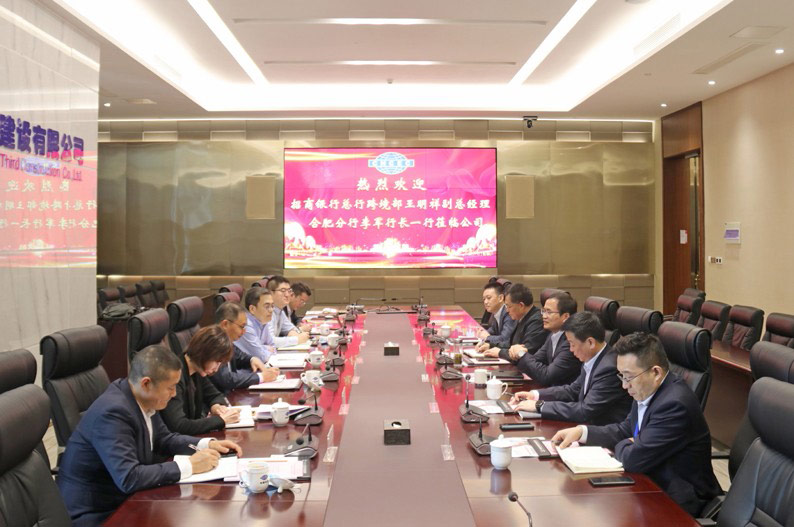 11月2日,占德庆董事长在合肥总部会见招商银行合肥分行行长李军、总行跨境部副总经理王明祥一行。