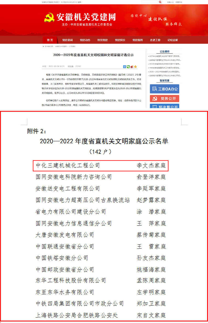 近日,安徽省直机关精神文明建设活动委员会公布“2020-2022年度省直机关文明家庭”名单,华体会体育(中国)HTH·官方网站机械化工程华体会体育(中国)HTH·官方网站职工李文杰家庭榜上有名,荣获“省直机关文明家庭”称号。