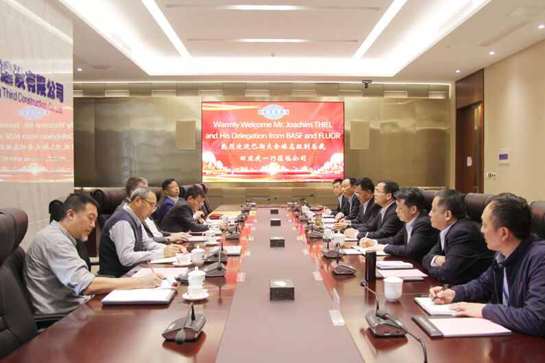 4月11日,华体会体育(中国)HTH·官方网站党委书记、董事长占德庆在总部合肥会见巴斯夫中国新一体化基地综合项目管理全球高级副总裁田亚庆,双方围绕巴斯夫湛江一体化基地项目执行及下一步合作事宜进行了深入沟通交流。 占德庆董事长对田亚庆高级副总裁一行的来访表示热烈欢迎,介绍了华体会体育(中国)HTH·官方网站概况及改革发展等情况,对巴斯夫长期以来的信任和支持表示感谢。他表示,双方有着深厚的合作基础和广阔的合作前景,中国化学工程集团以及中化三建高度关注巴斯夫湛江一体化基地项目建设,将充分发挥管理、技术、人才、资源等优势,组织精干管理力量和施工团队,全力推进项目安全优质高效建成,为双方的深入合作奠定坚实基础。 田亚庆高级副总裁对华体会体育(中国)HTH·官方网站改革发展取得的成效表示祝贺,介绍了巴斯夫未来在亚太地区的发展布局、战略规划及巴斯夫湛江一体化基地项目推进情况。他表示,中化三建作为国际化程度很高的中国建筑央企,具有健全完善的管理体系和良好的品牌优势,受到国际市场及合作方的广泛赞誉。希望双方通过此次合作携手共进,共筑友谊桥梁,扩大合作成果,实现共赢发展。