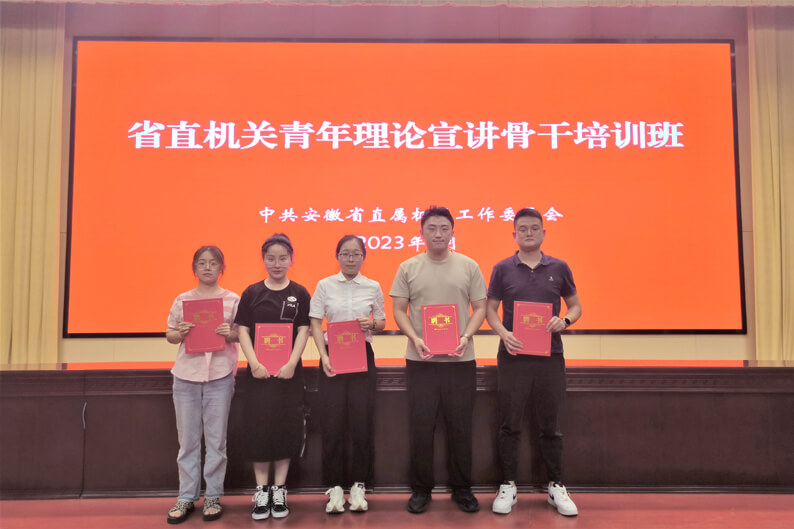 7月28日,安徽省直机关青年理论宣讲骨干培训班(第二期)在省直机关工委党校举行。华体会体育(中国)HTH·官方网站5名省直机关工委主题知识竞赛参赛选手参加培训。省直机关工委书记朱斌出席培训班,并为参训人员颁发“省直机关青年理论宣讲员”聘书。