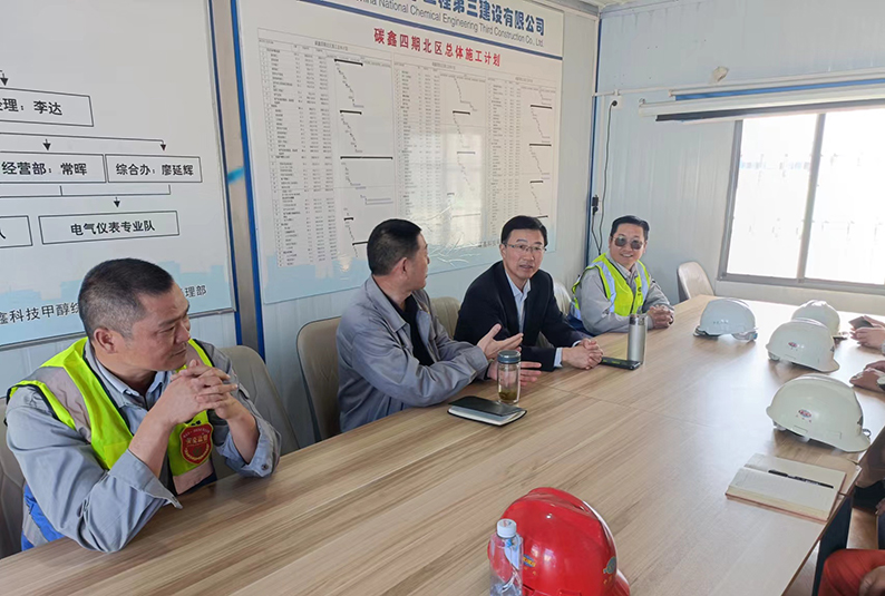 近日,华体会体育(中国)HTH·官方网站党委副书记、工会主席顾士新应邀出席安徽碳鑫科技甲醇综合利用项目中交仪式,并深入淮北旺能项目经理部调研。