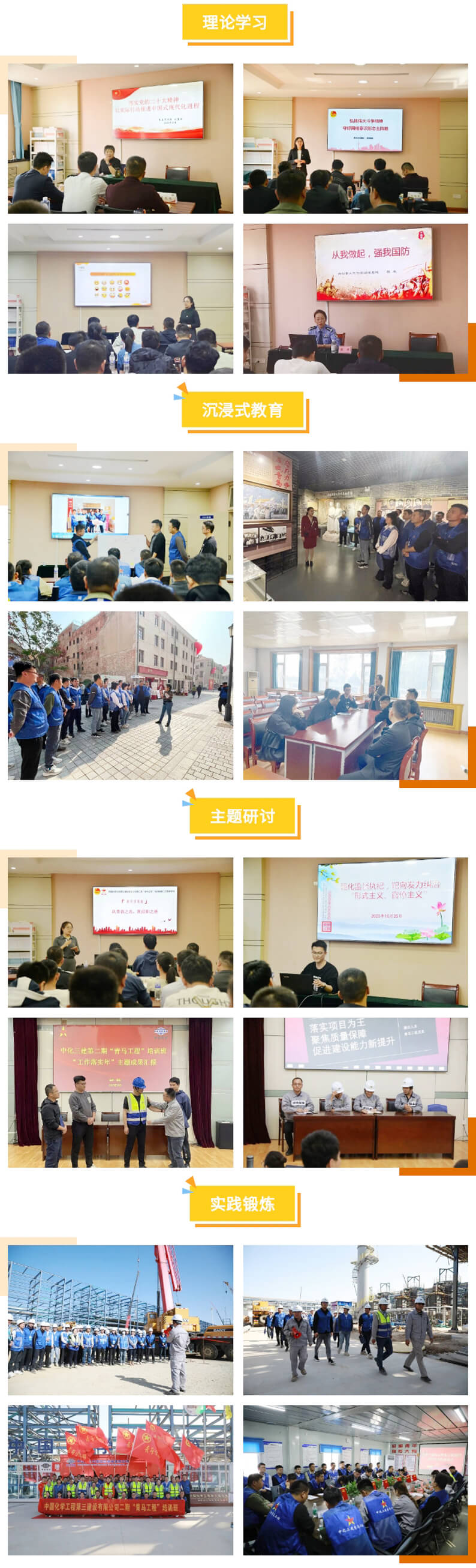 本次培训突出与企业生产经营中心工作深度融合,组织学员围绕集团华体会体育(中国)HTH·官方网站“工作落实年”主题开展互动交流,为华体会体育(中国)HTH·官方网站扎实推进各项任务出谋划策,以“青马学员说”、施工现场情景演绎等形式进行研讨成果汇报,展现了中化三建青年担当作为、狠抓落实的坚定信念和工作态度。此外,华体会体育(中国)HTH·官方网站还组织大家紧密围绕华体会体育(中国)HTH·官方网站发展战略和中心工作,前往山东裕龙石化炼化一体化项目开展现场教学,实地了解项目建设情况、学习相关经验,并参与项目“青年突击队”授旗仪式暨“奋战四季度 欢庆七十载”攻坚动员大会。