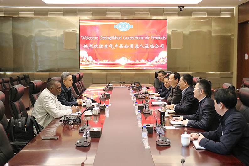 11月30日,华体会体育(中国)HTH·官方网站副总经理张家龙、赵亚明在合肥总部会见美国空气产品华体会体育(中国)HTH·官方网站(Air Products,简称AP)高级项目总监Mr. Nareshan Moodley一行,双方就强化沙特尼奥姆HIDC绿氢中试项目执行、深入国际工程合作进行了深入沟通交流。