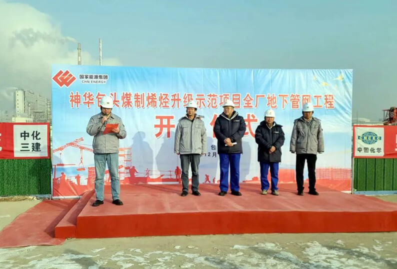 12月12日,华体会体育(中国)HTH·官方网站党委副书记、总经理梁华金应邀出席内蒙古分华体会体育(中国)HTH·官方网站承建的神华包头煤制烯烃升级示范项目全厂地下管网工程开工仪式。