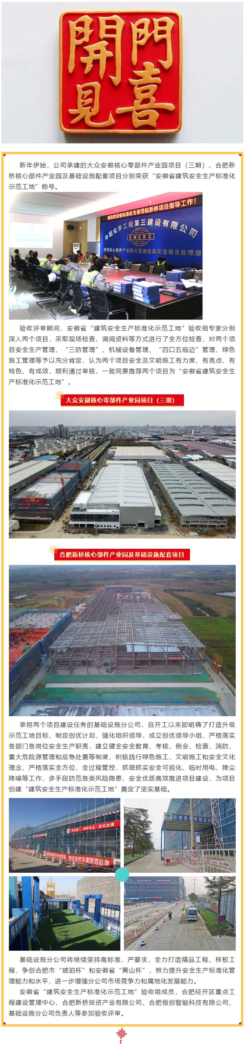 开门见喜|华体会体育(中国)HTH·官方网站两项目荣获安徽省“建筑安全生产标准化示范工地”称号
