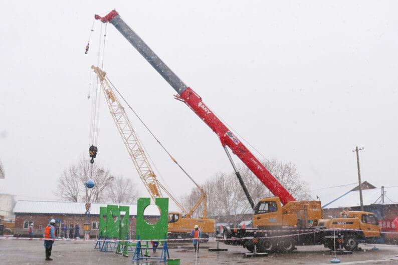本次比赛包括理论知识考试和实际操作技能比赛两个环节。其中,理论知识考试成绩占总成绩的30%,实际操作技能比赛分为汽车式起重机和履带式起重机“圆桶避障就位”和“球体穿越就位”两个科目,占总成绩的70%。理论考试环节,选手们沉着应对、规范作答,凭借对起重机安全操作规程、机械维护保养等理论知识掌握程度,按时完成答题。实操比赛考验选手们对起重机吊装操作熟练性、平稳性和避障物体、空间位置判断能力,以及完成比赛过程效率等方面技能。由于比赛全程风雪,大大增加了比赛难度,选手们以扎实的基本功和沉着冷静的心态积极应对,均在规定时间内完成比赛,真正做到了“稳、准、快、巧”,赢得现场观众的一致赞许。比赛期间,裁判组对吊装操作进行打分评判,做到严守纪律、严格裁决、公平公正;会务组全体人员细致安排、周到服务,保证了竞赛顺利进行。