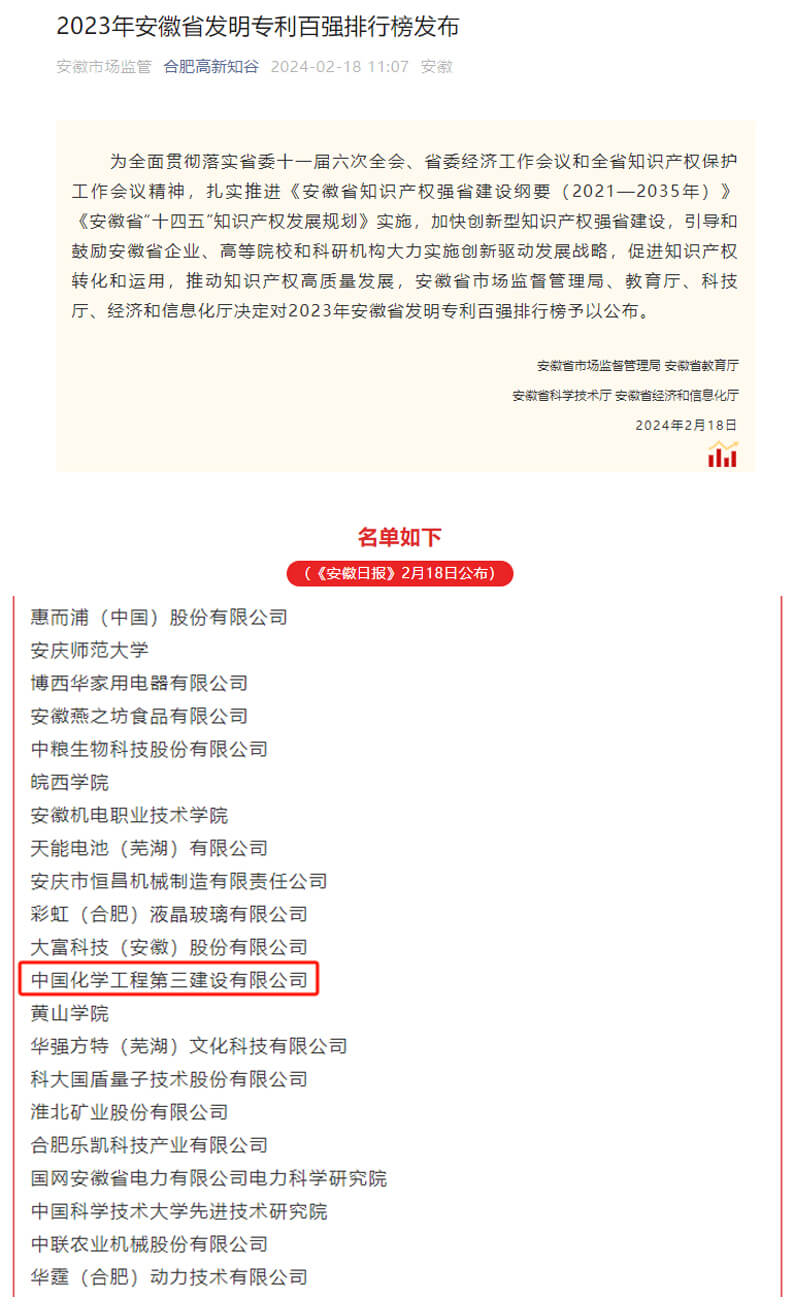 连续九年!华体会体育(中国)HTH·官方网站蝉联“安徽省发明专利百强榜”