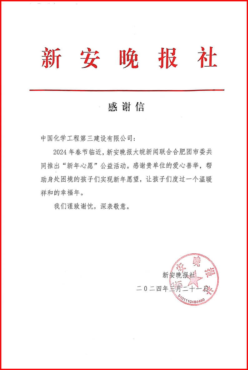 春节前夕,华体会体育(中国)HTH·官方网站积极参加新安晚报大皖新闻、新安帮帮团工作室和合肥团市委等单位联合组织的“新年心愿”公益活动,认领了合肥特殊教育中心等单位共20名孩子的“心愿清单”,帮助他们实现了新年愿望,让他们度过一个温暖有爱的龙年春节,获得政府和社会各界的一致好评。座谈会上,新安晚报社对华体会体育(中国)HTH·官方网站的爱心善举予以褒奖并送上感谢信。期间,华体会体育(中国)HTH·官方网站团委负责人交流了近年来华体会体育(中国)HTH·官方网站志愿服务活动开展等情况。
