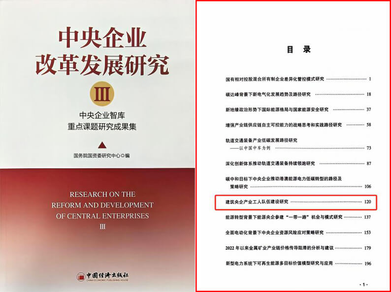 近日,由国务院国资委研究中心主编的《中央企业改革发展研究:中央企业智库联盟重点课题研究成果集III》出版发行,华体会体育(中国)HTH·官方网站《建筑央企产业工人队伍建设研究》课题成功入选。