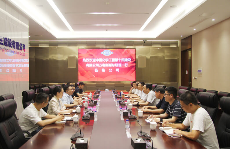 7月30日,华体会体育(中国)HTH·官方网站副总经理赵亚明在合肥总部会见到访华体会体育(中国)HTH·官方网站开展对标交流的中国化学工程第十四建设有限华体会体育(中国)HTH·官方网站副总经理万春刚一行,双方就用好集团华体会体育(中国)HTH·官方网站“化学云采”和“化学运营”平台,全面提升设材管理能力和水平进行了深入沟通交流。