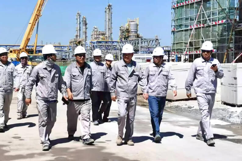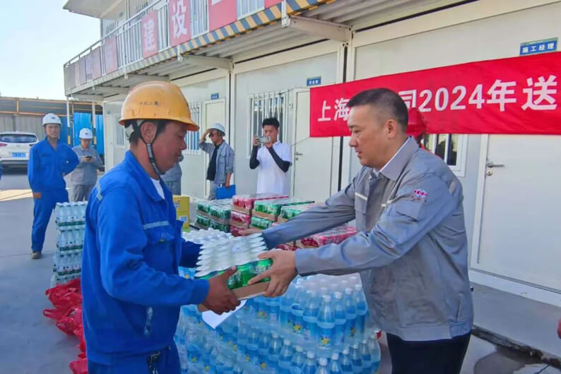 调研中,李传江副总经理亲切看望慰问高温天气下坚守岗位的一线干部员工,为大家送上防暑降温物资,感谢他们为项目建设付出的辛勤努力,叮嘱大家要做好防暑降温和个人防护,注意高温作业安全,在保证安全和质量的前提下,高效推进项目建设,确保项目早日建成投产。