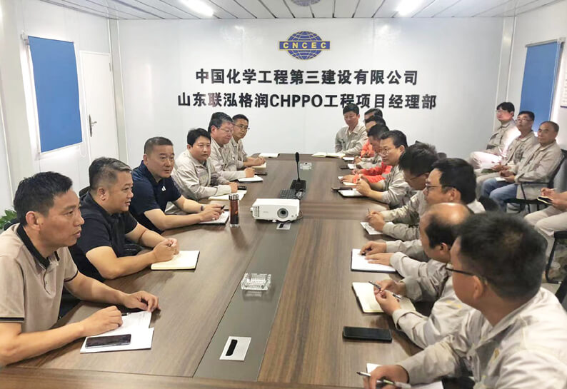 近日,华体会体育(中国)HTH·官方网站副总经理李传江赴山东滕州参加联泓格润(山东)新材料有限华体会体育(中国)HTH·官方网站新能源材料和生物可降解材料一体化项目高层推进会,并深入山西直属项目经理部承建的联泓格润一体化项目30万吨/年CHPPO装置现场调研。