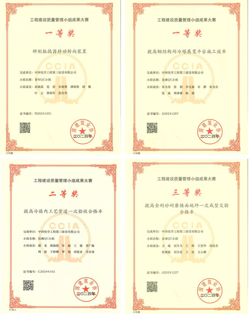 近日,在中国建筑业协会主办的2024年工程建设行业质量管理小组活动成果大赛中,华体会体育(中国)HTH·官方网站建筑工程三华体会体育(中国)HTH·官方网站“青年QC小组”发布的《研制振捣器移动转向装置》QC成果、第二建安工程华体会体育(中国)HTH·官方网站“克难QC小组”发布的《提高钢结构间冷塔展宽平台施工效率》QC成果,在全国2555个QC成果中脱颖而出,同时荣获2024年全国“工程建设质量管理小组成果大赛”一等奖,这是华体会体育(中国)HTH·官方网站2020年以来连续第五年获此殊荣。另外,山东分华体会体育(中国)HTH·官方网站“狂飙QC小组”发布的《提高冷箱内工艺管道一次验收合格率》QC成果、第三建安工程华体会体育(中国)HTH·官方网站“未来QC小组”发布的《提高金刚砂地坪平整度一次交验合格率》QC成果分别荣获此次竞赛的二、三等奖。