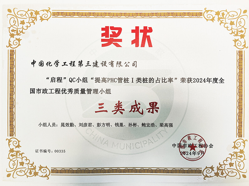 此外,江苏分华体会体育(中国)HTH·官方网站“追梦QC小组”针对东方雨虹扬州虹石4.8万吨/年VAE乳液及10万吨/年VAEP可分散胶粉项目仪表接线一次校验合格率低等问题,开展《提高仪表接线一次交验合格率》QC课题研究,顺利将仪表接线一次校验合格率提高到99.72%,节约费用约2.09万元,在中国施工企业管理协会近日举办的2024年工程建设质量管理小组活动竞赛中荣获二等成果;巴斯夫(广东)一体化项目部“启程QC小组”针对PHC管桩基础首次采用抱箍式机械连接,造成Ⅰ类桩的占比率相对较低的问题,开展《提高PHC管桩Ⅰ类桩的占比率》QC课题研究,顺利将PHC管桩Ⅰ类桩占比率提高到93.33%,在中国市政工程协会近日举办的2024年全国市政工程优秀质量管理小组活动中荣获三类成果。