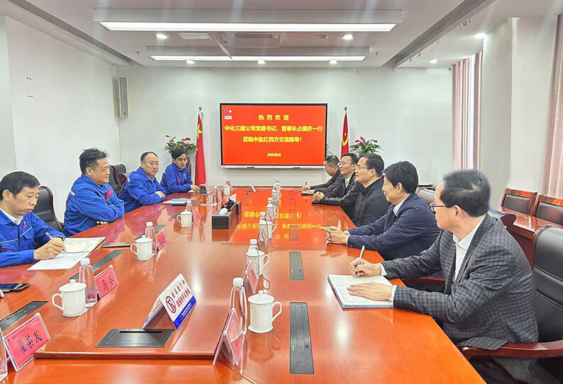 董亮董事长对占德庆董事长、梁华金总经理的来访表示欢迎,介绍了中盐红四方发展情况,表示多年来双方互相信任与支持,在合作中建立了深厚情谊。中化三建是工业工程领域“排头兵”,中盐红四方十分看重双方的合作,希望进一步加强沟通交流,持续拓展合作深度与广度,共同开发多元领域市场,促进双方更高质量更可持续发展。