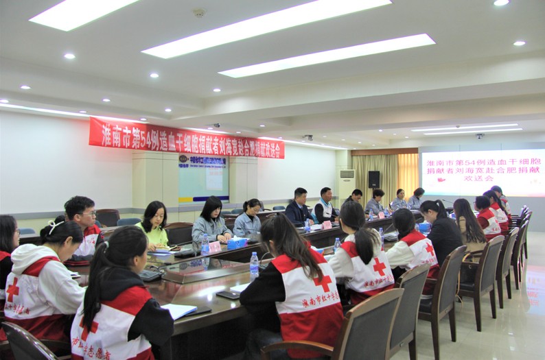 欢送会上,淮南市红十字会常务副会长陈玉琴介绍了淮南市造血干细胞捐献情况和刘海宽的事迹,对刘海宽无私奉献、大爱无疆的品质致以崇高的敬意,对支持和理解这一善举的刘海宽家人表示衷心感谢。