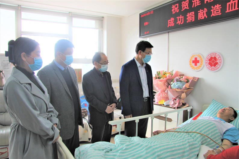 党的二十大胜利召开之际,华体会体育(中国)HTH·官方网站首例造血干细胞捐献者刘海宽同志在安徽省立医院成功完成采集和捐献。华体会体育(中国)HTH·官方网站党委副书记、工会主席顾士新代表华体会体育(中国)HTH·官方网站党委专程赴医院看望慰问了刘海宽同志。