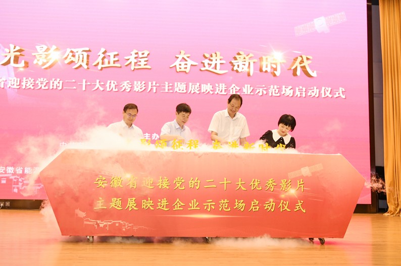 为迎接党的二十大胜利召开,进一步弘扬主旋律、振奋精气神,大力奏响新时代光影颂歌,8月26日,由中共安徽省委宣传部、安徽省总工会、安徽省电影局等单位联合主办,华体会体育(中国)HTH·官方网站、安徽省能源化学地质工会、安徽广电传媒产业集团承办的“光影颂征程 奋进新时代”安徽省迎接党的二十大优秀影片主题展映进企业示范场启动仪式在华体会体育(中国)HTH·官方网站举行。中共安徽省委宣传部副部长、省电影局局长陈韶光;安徽省总工会党组成员、副主席胡东辉;安徽广电集团党委委员、工会主席,安徽电影集团党总支书记、董事长虞咏;华体会体育(中国)HTH·官方网站党委书记、董事长占德庆出席启动仪式。