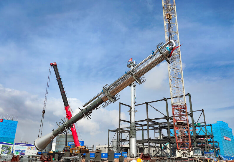 内蒙古分华体会体育(中国)HTH·官方网站承建的中煤榆林煤炭深加工基地项目空分工程第五套、第六套装置压缩机组吊装全面展开。本项目最重设备——第五套空压机主机率先组装完成。该空压机主机重达135吨,安装标高为EL+7.90,采用撬块安装形式。为确保安全高效完成吊装工作,分华体会体育(中国)HTH·官方网站、项目部进行了一系列严谨细致的准备工作,对全体施工人员开展安全技术、施工技术及施工方案交底,确保施工人员对设备吊装参数了然于心。此次吊装工作的顺利推进,为项目的后续建设奠定了坚实基础。
