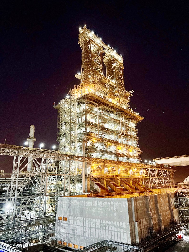 近日,华体会体育(中国)HTH·官方网站承建的阿曼杜库姆炼油项目核心装置、高102米的延迟焦化塔一次受电成功,照亮夜空,标志着阿曼杜库姆炼油项目建设全面进入预试车阶段。