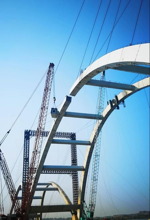 十六号路跨海桥桥体主跨跨径200米,高61.5米,宽48.6米,拱肋重量大、吊装难度高。受疫情影响,现场一度封闭1月有余。第二建安工程华体会体育(中国)HTH·官方网站积极创造条件,利用现场仅有的资源开展各项准备工作。随着疫情好转,他们迅速着手主跨安装,在保证安全质量、做好疫情防控的前提下,不断加快建设进度,仅用1个月时间,就顺利完成主跨19段近1400吨的拱肋安装。主跨合龙段安装条件极为苛刻,为避免日照对合拢段尺寸精度产生的影响,他们连续1周在凌晨4点前测量合拢段两端尺寸。全体参战员工每日凌晨2点就奔赴现场,精确测量、精准下料,保质保量完成了难度最大的主跨合龙。