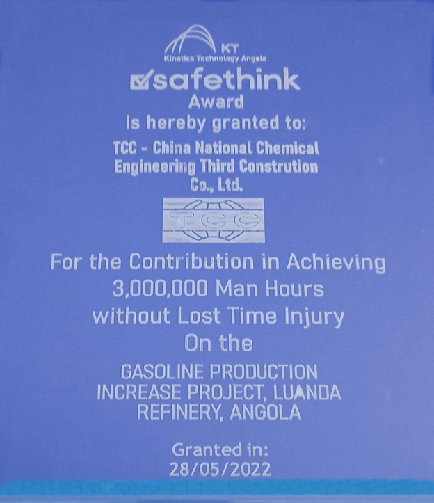 庆典仪式上,总包KT华体会体育(中国)HTH·官方网站对中化三建为项目建设安全高效推进作出的突出贡献表示敬意和感谢,授予华体会体育(中国)HTH·官方网站300万安全工时奖牌。华体会体育(中国)HTH·官方网站安哥拉项目经理部经理张雷登台接受嘉奖。