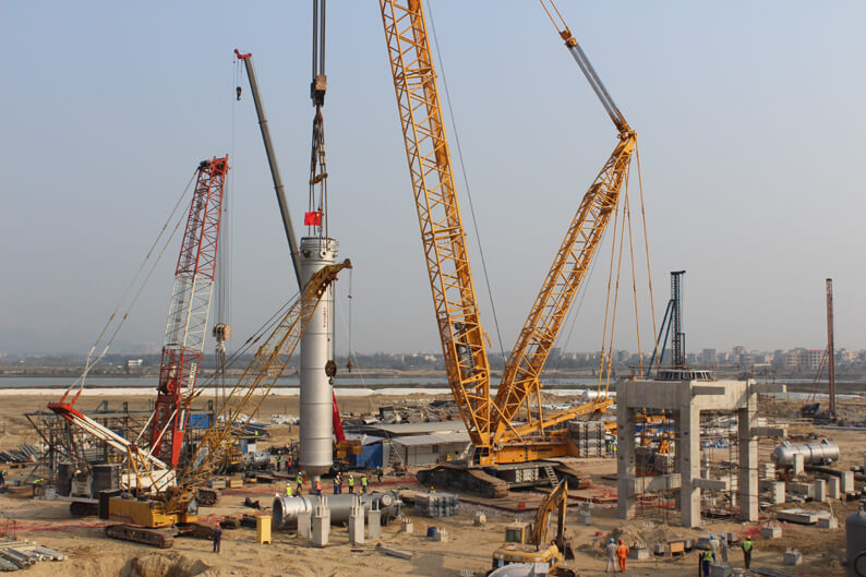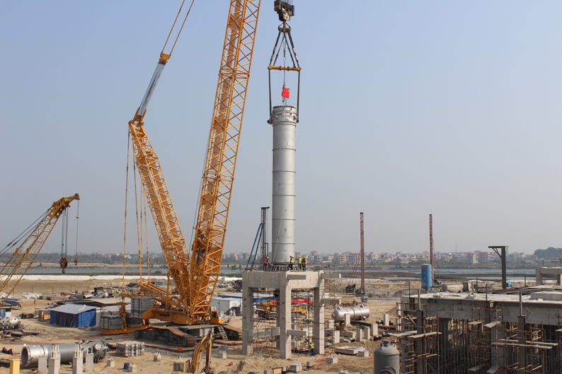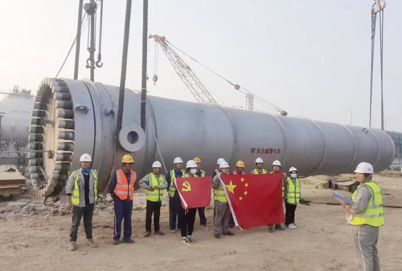 江苏分华体会体育(中国)HTH·官方网站承担吊装的合成氨装置合成塔重265吨,直径3.2米,高22米,现场采用750吨履带吊主吊,260吨履带吊辅吊。为确保吊装工作顺利完成,分华体会体育(中国)HTH·官方网站高度重视,多次组织项目部认真讨论、编制、审核设备吊装技术方案和安全保证措施。吊装前,项目部严密组织与筹划,对作业条件和安全措施进行仔细检查,并对参与吊装的所有人员进行了施工技术交底和安全技术交底。施工过程中,全体参战员工克服场地狭小,设备到货延迟、昼夜温差大等不利因素影响,充分发扬“特别能吃苦、特别能战斗”的优良传统,各岗位协调一致、配合默契,各环节紧密衔接,吊装过程井然有序,一气呵成,圆满完成此次合成塔吊装任务,获得了各方高度赞誉,充分展现了华体会体育(中国)HTH·官方网站优秀的施工组织能力,树立了良好的品牌形象。
