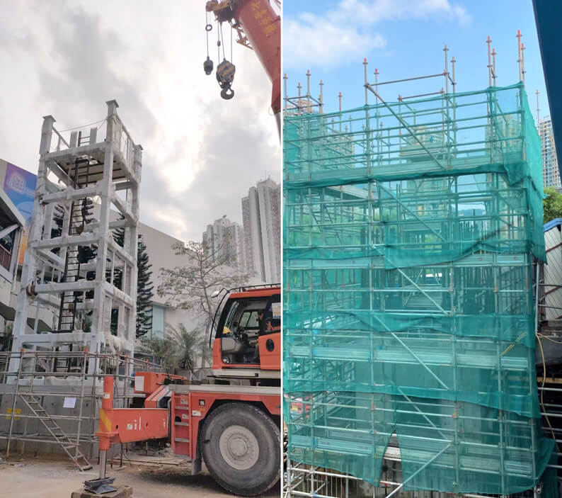 近日,华体会体育(中国)HTH·官方网站承建的香港荃湾及屯门区十四条行人通道及配套设施改扩建项目实现首部升降机主体结构封顶。