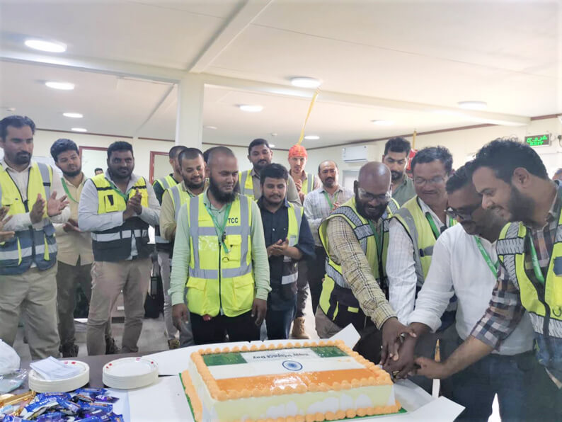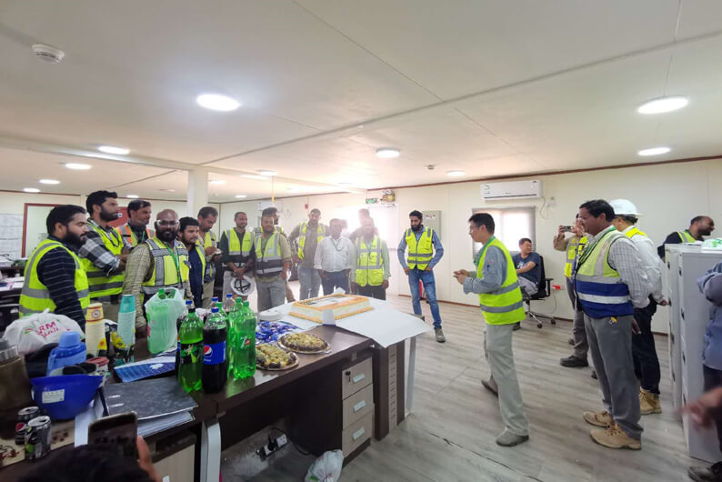 活动中,绿氢项目经理部负责人精心为两国员工准备了蛋糕和小礼品,对外籍管理人员和工人们在项目建设中付出的努力及取得的成绩给予充分肯定,为他们送上节日祝福。沙特绿氢项目目前共有巴基斯坦籍员工43人,印度籍员工63人,外籍员工们的日常工作主要是协助项目部各部门与业主安全、质量和工程计划部门开展对接工作。在分华体会体育(中国)HTH·官方网站和项目部的领导下,他们充分发挥语言、专业等方面优势,通过工作沟通和日常交流,有效提升工作效率,有序推进项目建设。项目建设期间,中外员工之间也建立了深厚的友谊,为加快推进沙特分华体会体育(中国)HTH·官方网站“三化”建设,做大做强中国化学国际品牌筑牢了稳定的思想根基。