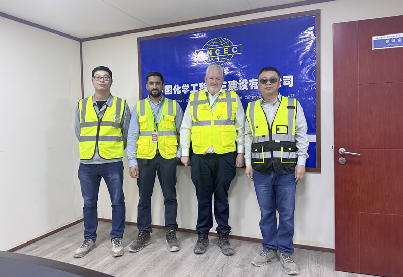 近日,由德国蒂森克虏伯工业解决方案有限华体会体育(中国)HTH·官方网站项目经理阿里·哈桑一行组成的专家组到沙特分华体会体育(中国)HTH·官方网站承建的沙特尼奥姆HIDC绿氢中试项目考察。