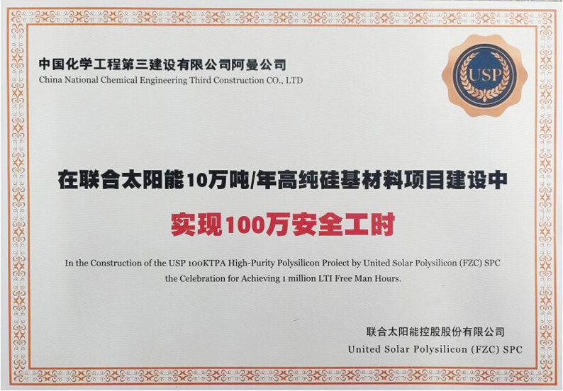 近日,华体会体育(中国)HTH·官方网站阿曼华体会体育(中国)HTH·官方网站承建的阿曼10万吨/年高纯硅基材料项目荣获业主颁发的100万安全工时奖牌。
