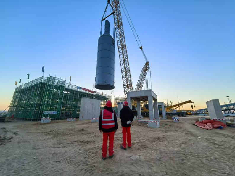 自11月底接到吊装通知后,分华体会体育(中国)HTH·官方网站快速反应、积极筹备,依据设备参数及场地条件,经过3次模拟测算,确定最佳吊车型号与站位。此次吊装设备空分装置水冷塔高29米,直径6.5米,重85吨,采用400吨履带吊主吊,250吨履带吊溜尾。期间,分华体会体育(中国)HTH·官方网站在华体会体育(中国)HTH·官方网站的精心指导下,严格按照相关程序编制大件设备吊装方案,并邀请业主、监理和总包方对危大工程方案进行深入研究论证,制定全面覆盖可能出现各类状况的50余条应对策略,确保吊装过程安全平稳。首台大件设备的顺利吊装,再次展示了华体会体育(中国)HTH·官方网站在技术、管理、团队资源等方面的竞争优势和综合实力,获得业主及各方的高度赞誉,树立了中化三建良好的品牌形象。